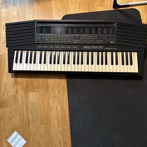Yamaha keyboard med fullt klaviatur og innebygde funksjoner og kontroller på frontpanelet. Egnet til øving, musikkopplæring og generell bruk hjemme eller i øvingsrom. Flere knapper og valg for lyder, rytmer og innstillinger, samt display for oversikt over funksjoner.