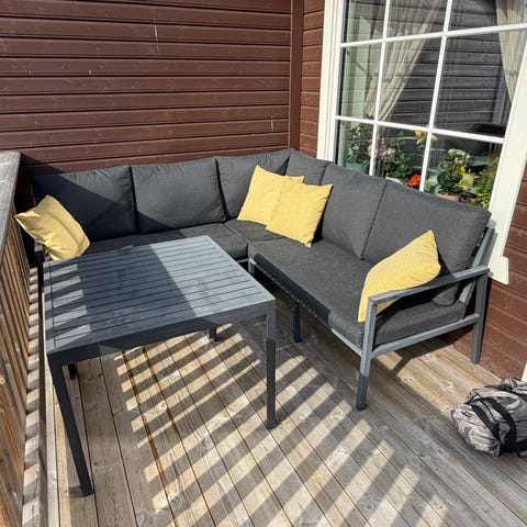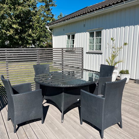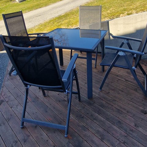 Nytt i fjor - Jutlandia hagebord med 4 stoler grå m/puter. Ny pris 8.000