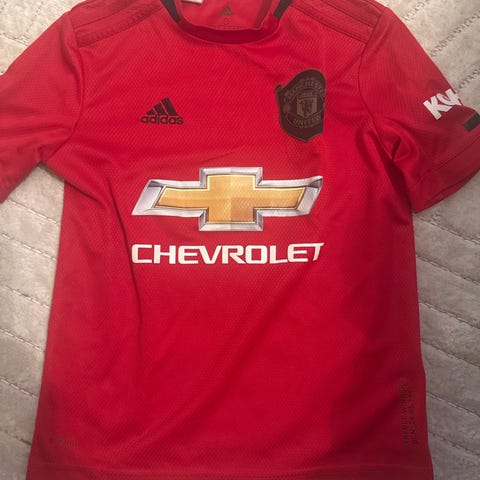 Original Adidas Manchester United fotballdrakt for barn i størrelse 140.
