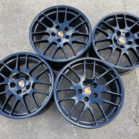 Felgene er nylakkerte i svart høyglans med CNC-finish og fremstår som nye. Ingen riper, ingen kantkjøring – virkelig et strøkent sett!
