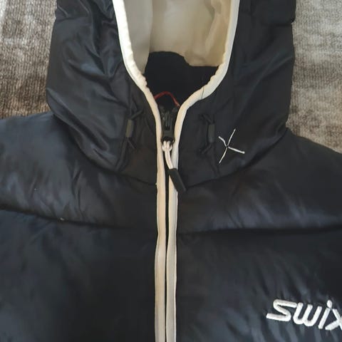 Swix jakke for herre i størrelse L. Jakken er rød med kontrastfelt øverst og hel glidelås i front. Den har hette og sidelommer. Materiale i bomull gjør jakken egnet som hverdags- og fritidsjakke i kjølig vær.