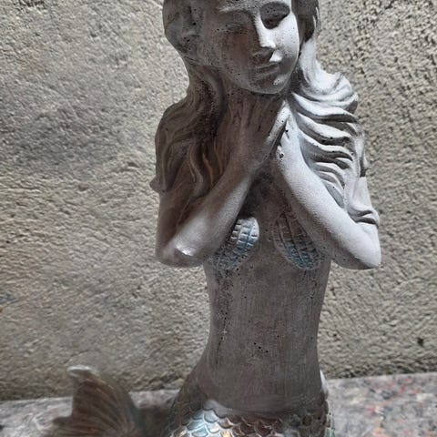 Gino Manca, hagekunst, fontene, havfrue, vintage, retro, hagefigur, skulptur, betongfigur, samleobjekt.