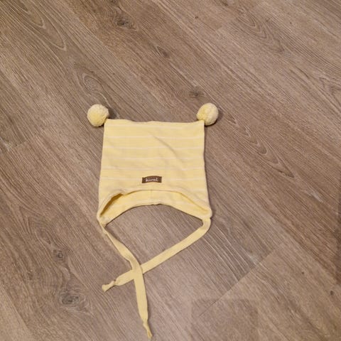 Kivat vårlue selges. Stripete i ulke blåtoner. Str 2.