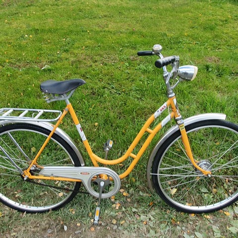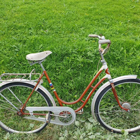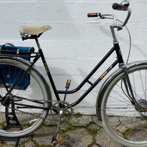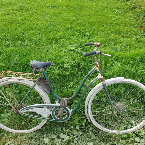Selger en meget pen vintage damesykkel fra DBS, trolig fra 70-tallet. Nydelig grønnfarge. Den er i fin kosmetisk stand gitt alderen. Den har stått tørt og urørt i mange år, så den trenger nok en liten overhaling med olje og luft i dekkene, men sist gang den ble brukt fungerte i hvert fall alt som det skal.