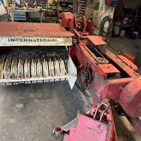 Godt brukt, men helt i orden. I daglig bruk. Ny hovedreim. Var nye kniver da vi kjøpte den. Brukt i ca 12 år på ca 40 baller pr år. Bygd opp så det er større høyde fra gulv. God stand. Alt av elmotorer og elanlegg/boks/brytere er i orden. Nødstoppbryter funker.