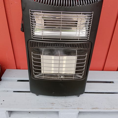 Frittstående gassovn som gir hurtig og effektiv varme. Ovnen har hjul og det er enkelt å flytte den rundt etter behov.