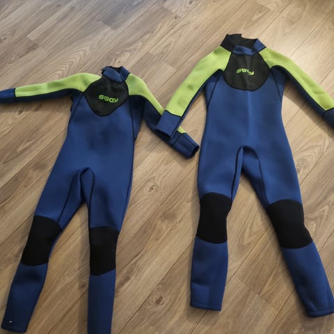 Sway våtdrakt med korte ermer og korte ben i blå og grønn farge i str 12. Drakten har glidelås i ryggen med snor for enkel lukking. Egnet som våtdrakt for barn til bading og vannsport i kjøligere vann. Materialet er typisk elastisk neopren som gir isolasjon og bevegelsesfrihet.