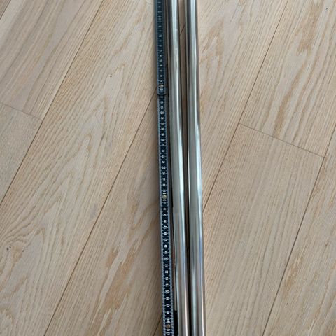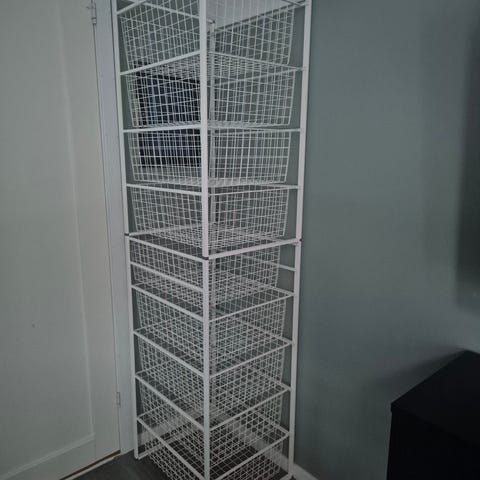 Selger to stativ (på bildet satt sammen til ett) fra Elfa som jeg har til overs, hver av dem måler 74 cm i høyden og 53,5 cm i bredden - så total høyde blir 148 cm. Noen bruksmerker. Nypris 1871,- - selges for 900.