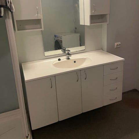Har skuffer og skap 160cm lengde med god oppbevaringsplass. , speil 80*100 cm
