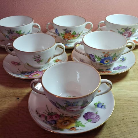 6 500 krMeissen porselen - Kaffeeservice - Blomstermønster - 1. valg - gullkantArendalLegg til som favoritt.