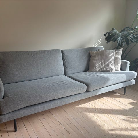 Lett og solid sofa i modell med legendarisk gullfarget sofatrekk.