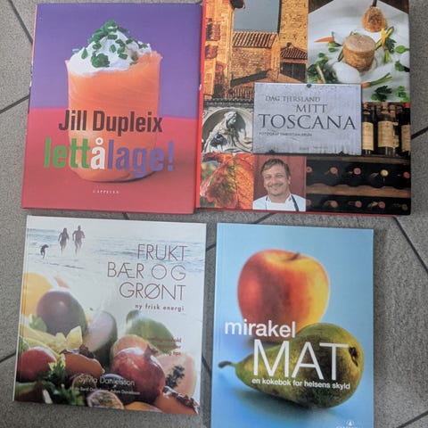5 kokebøker selges samlet etter enkeltvis