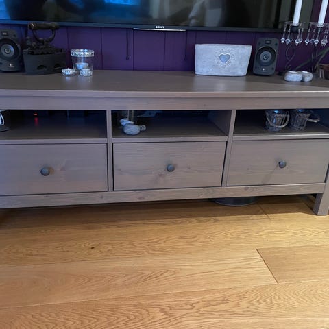 Veldig pent brukt tv benk og skjenk selges samlet. Skjenken er håndlaget og helt unikt - laget ved innkjøp av møblement til tv benk og snekret om til å bli en skjenk istedenfor. Selges samlet!!