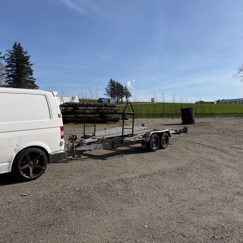 Selger biltransporthenger med kjøreramper 2700kg nyttelast 2113 kg registrert 27.dec 2024 veldige god å kjøre med veldige stabile og enkel å bruke på trange steder .brukt veldig lite.plastikk deksel på vinsj er sprukket.