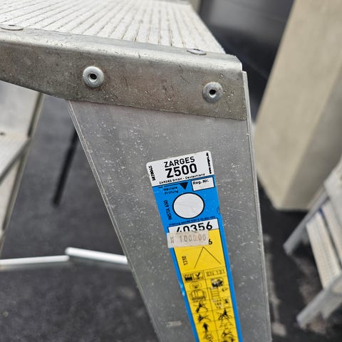 Zarges C621 trappestige i aluminium. Modellen har brede trinn og en større plattform øverst for stabil ståflate. Egnet til arbeid innendørs og utendørs der det er behov for en kompakt og lett trappestige. Konstruert i aluminium for lav vekt og enkel håndtering. Oppfyller NS-EN 131-2 standard i henhold til merkingen på stigen.