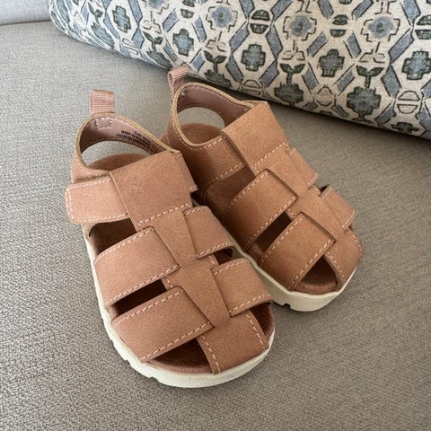 Dette er den perfekte åpne skoen for barn som ikke liker å bruke sandaler. De er laget av krom og metallfritt skinn med en vakker semsket skinndetalj på hælen. Skinn som er garvet uten krom og metall kan få en herlig patina over tid. Sandalen har to justerbare borrelåsremmer over foten, så den sitter godt på foten og er behagelig for barnet ditt å ha på seg.
