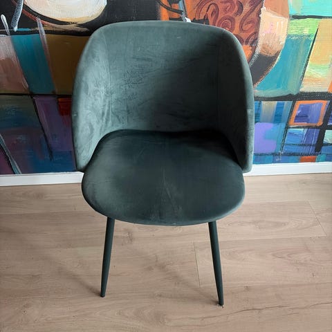 Grønn fløyel stol fra Søstrene grene i fin stand. Må hentes.