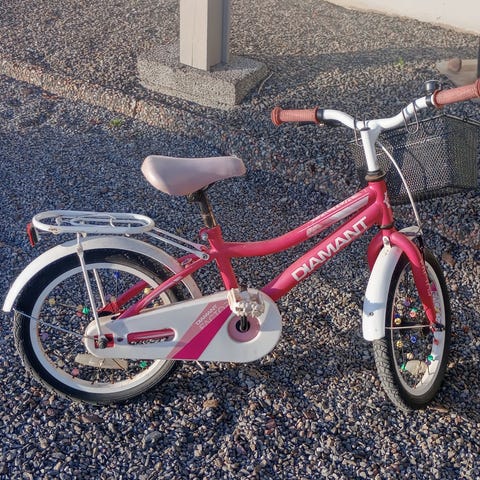 Merida Matts barnesykkel med 16" hjul. Sykkelen har aluminiumsramme, felgbremser foran og bak, samt støtte. Fargen er rosa med hvite detaljer og hvitt sete. Egnet som barnesykkel med hjulstørrelse 16" for bruk på asfalt og lette grusveier.
