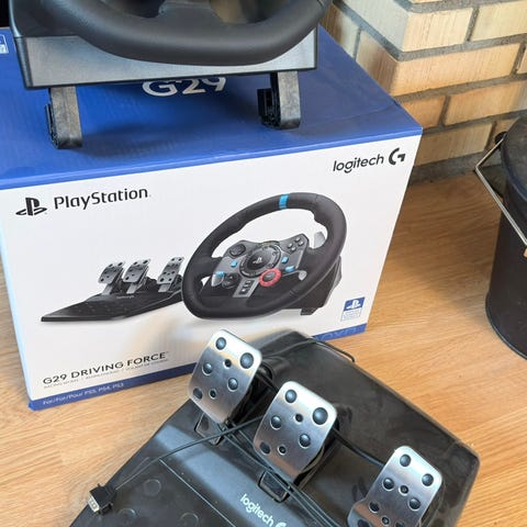Helt ny Logitech G29 ratt og pedaler med girspak er et racingsett for PlayStation og PC. Settet består av ratt med innebygde knapper og kontroller, trepedalsmodul med gass, brems og clutch, samt separat manuell girspak. Rattet har gummiert overflate for bedre grep og feste, og er utformet for bord- eller stativmontering. Pedalene er montert på en base som kan plasseres på gulv. Produktet er egnet til bilspill og racingsimulatorer som støtter Logitech G29 på kompatible plattformer.