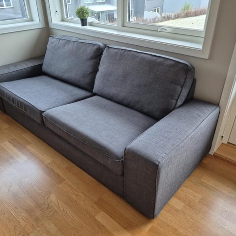 Grå IKEA Kivik 3 seter sofa til salg. Helt ok stand alder tatt i betrakning. IKEA selger forsatt nye trekk til denne type sofa i flere farger og mønstre.