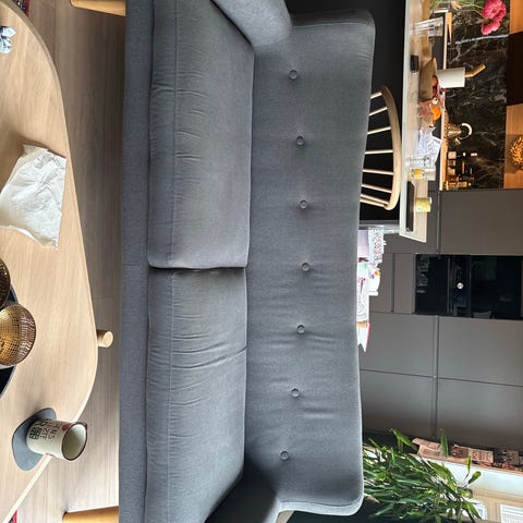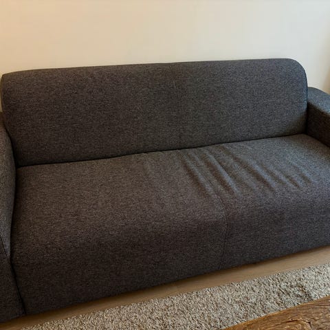 Er fint brukt sofa ser nesten ut som ny . Utenom på to av sidene der katten har kvesset klørne på . Men ellers fin om dette skjules inntill en vegg eller med ett teppe .