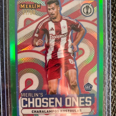 Sjeldent kort! Kun 5 av denne varianten i verden! Topps Merlin, Morgan Rogers Aston Villa, autograf fotballkort fra UEFA Club Competitions 2024/25. Kortet viser Morgan Rogers i Aston Villa-drakt og er merket som «Topps Certified Autograph Issue».