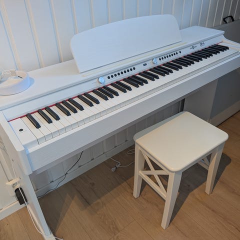 Pianoet er kjøpt nytt for noen år siden, men er brukt under 10 timer totalt – det har stort sett bare stått ubrukt. Fremstår derfor som tilnærmet nytt.