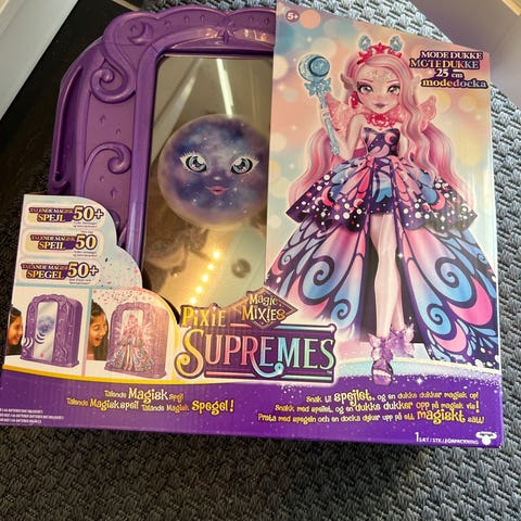 Kommer med maskerade-maske, samleroversikt og oppbevaringsboks, dukken har også sine tilhørende plagg og sko.