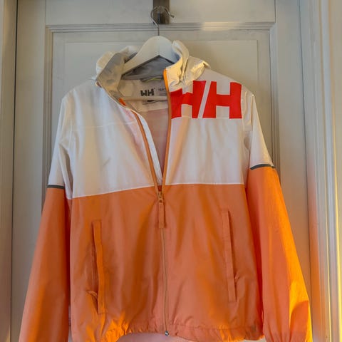 Svært lite brukt regnjakke fra Helly Hansen. Str. 14/164. Avtagbar hette med knapper. Glidelås lukking. Med lommer. Myk og god kvalitet.
