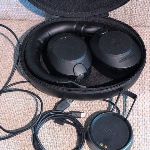 Selger et pent og lite brukt Jabra Evolve2 85 trådløst headset. Dette er flaggskipmodellen til Jabra, perfekt for både konsentrasjon på kontoret og profesjonelle møter.