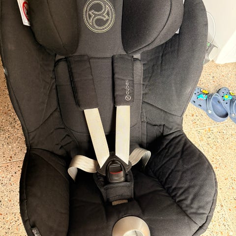 Cybex Sirona z i-size 360° med iso-fix base. Begge ble kjøpt nye i 2022 og ble brukt svært lite. De var ikke involvert i noen kollisjon og ble plassert på et godt sted. Ser ut som nye, ingen skader på setetrekket, bare små normale riper på iso-fix-basen. Setetrekket er nyvasket og klart til bruk