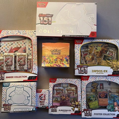 Selger 4x sealed 151 poster collections med nydelige cosmic promokort, 3x 151 boosterpakker og en stor plakat med alle 151 pokemons. Boksene er ikke i perfekt tilstand, kan ha noen merker i papp eller små riper i plastikken. Pris: