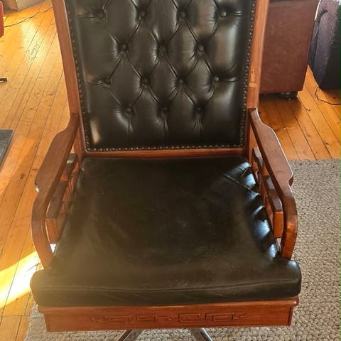 Stolen er i god stand og fremstår som solid og godt ivaretatt. Seteputen er ikke ferdig trukket, noe som gir en unik mulighet til å tilpasse farge/materiale etter egen smak – enten i skinn eller tekstil.