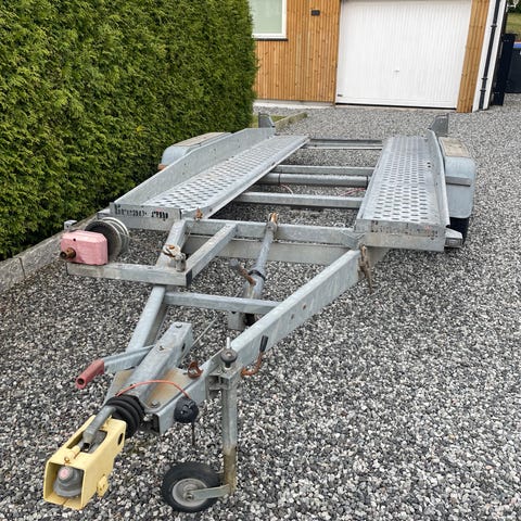 Enkel å bruke, og god å trekke. Meget god Biltilhenger /biltransporter med to kjørebaner i perforert, galvanisert stål. Tilpasset transport av bil eller andre kjøretøy. Utstyrt med drag foran og lys/registreringsskiltfeste bak. Egnet for bruk bak personbil eller varebil på vei og i vinterforhold som sommerforhold.