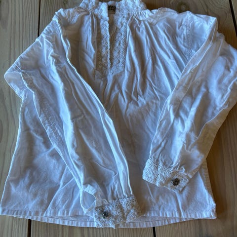 Bunadskjorte og to forklær. Det blomstrete forkleet er solgt.