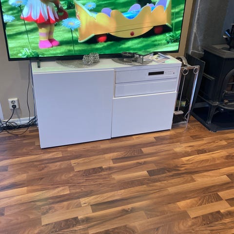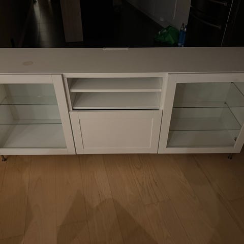 Som ny, hyller bak dørene. Glass hyller i midtre del