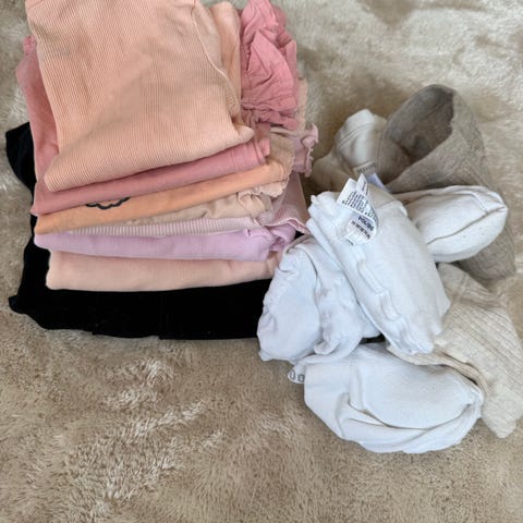 Størrelsene på klærne varierer, men de ble alle brukt samtidig av datteren min.