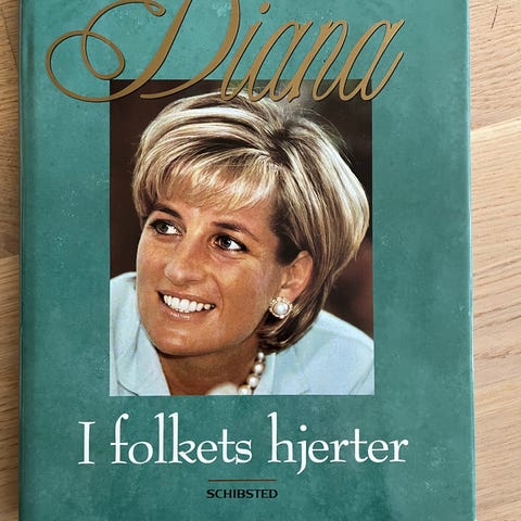 Anne‑Britt Møst «Diana – I folkets hjerter» bok. Innbundet biografisk bok om Diana, med omslagsbilde på forsiden. Tekst på norsk. Egnet for lesere som er interessert i biografier og historiske personer fra nyere tid.