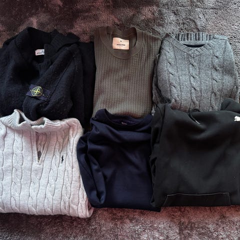 Selges som pakke – 5 herregensere i størrelse XL, passer gjerne også en L. Størrelsene oppleves i praksis som en stor L. Alle er brukte, men uten synlige skader eller hull.