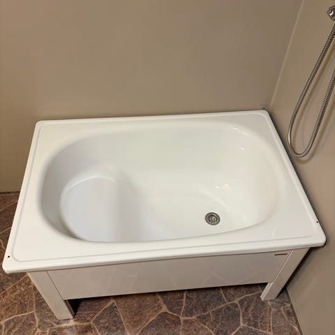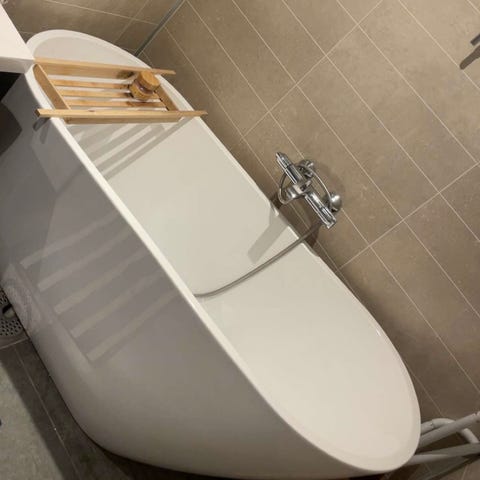 Hvitt badekar med rett design fra Megaflis, merket er Celeste. Passer til baderom med standard størrelse. Laget i slitesterkt materiale for daglig bruk. Noen få skrammer ellers i god stand. Ca 168cm langt og 70 cm bredt.