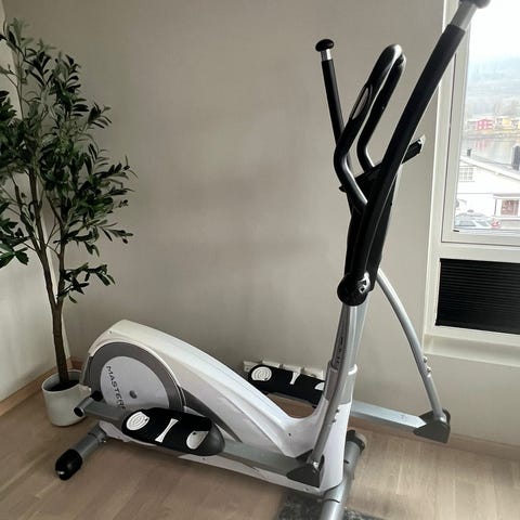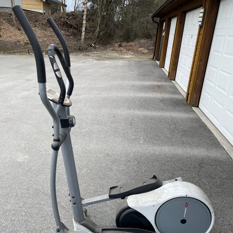 Motstanden kan justeres manuelt i flere nivåer med dreiehjul på frontstangen. Fotplatene er sklisikre, og håndtakene gir støtte under trening. Egnet for kondisjons- og utholdenhetstrening hjemme.