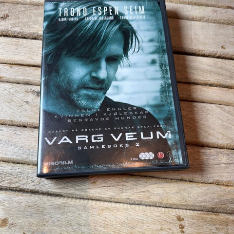 Varg Veum Samlingsbok DVD med flere filmer. Inneholder to plater med filmene basert på Karin Fossums bøker. DVD-en er i standard størrelse og format.