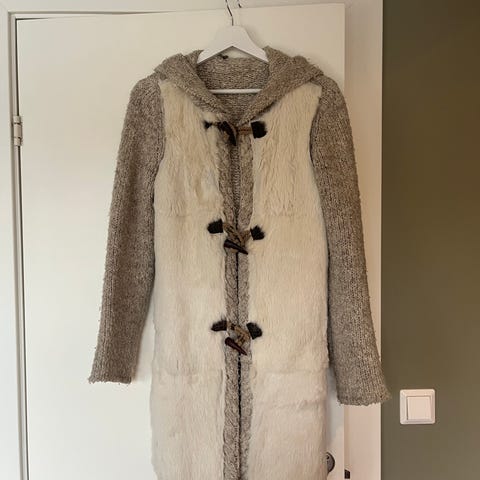 Nydelig boho cardigan med pelskrage. Str. XS/S