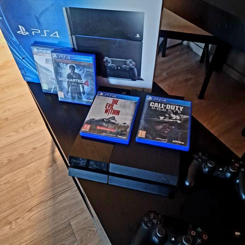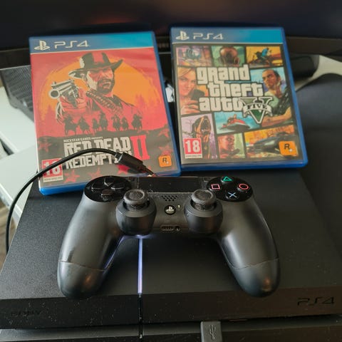 Selger en PS4 pro med 1tb lagringsplass i tillegg til en Kontroller og 3 spill.Spillene er gta 5 (premium Edition), Spiderman og Rainbow Six Siege. ,kan gå ned i pris for gode grunner. Kan også sende flere bilder. Selges, fordi jeg fikk en ps5, kan selges billigere hvis man ikke inkluderer Kontrolleren
