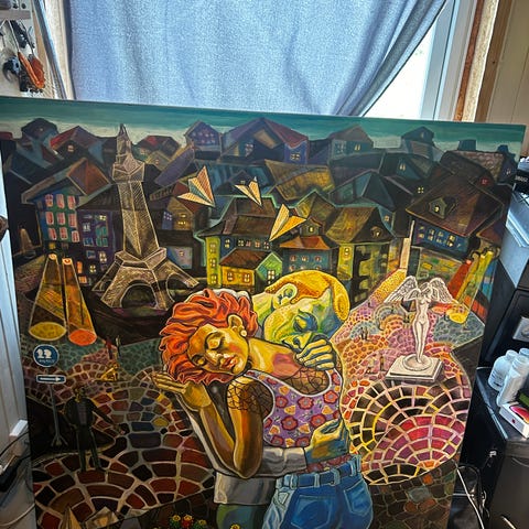 Lerret, akryl, olje.