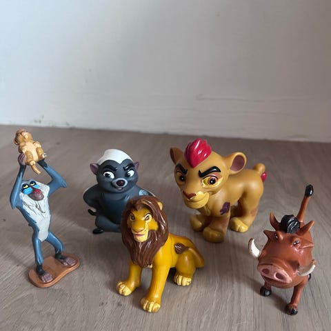 Disney figursett med små plastfigurer fra ulike Disney-filmer. Settet inneholder flere karakterer i ulike farger og poseringer. Figurene er laget i hard plast og er i liten størrelse som passer til lek på bord, gulv eller som pynt på barnerom. Egner seg til rollelek, samling av Disney-figurer eller som tilbehør til andre lekesett.
