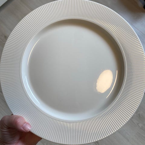 IKEA servise med tallerkener og boller i hvitt porselen. Settet består av flate og tallerkener, og skåler med riflet kant. Nøytral hvit farge som passer til de fleste borddekkinger.