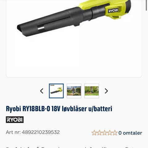 Ryobi 1900W løvblåser som også har suge- og kværnfunksjon (som reduserer plassbehov og gjør kompostering mer effektivt).