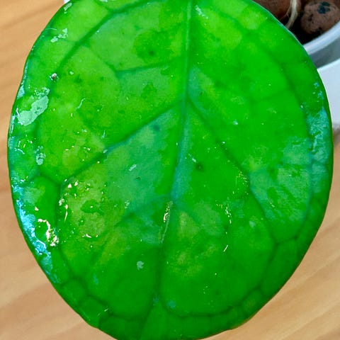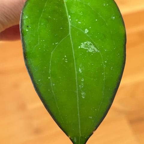 Blader på Hoya surigaoensis blir rød/fiolett med sterkt lys og forblir grønne når planten vokser i skyggen - se bilder på morplantene (siste to bilder i annonsen).