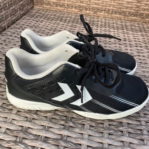 Hummel joggesko for barn i størrelse 35. Skoene er rosa med mørkelilla såle.